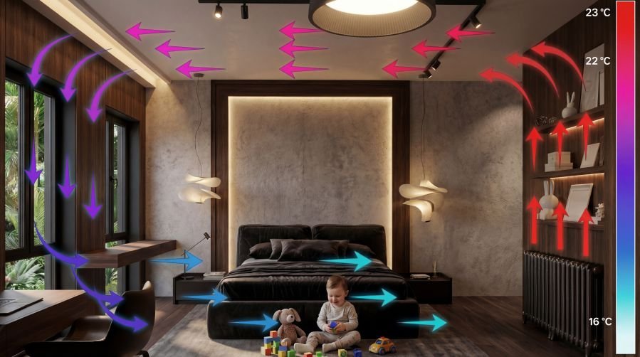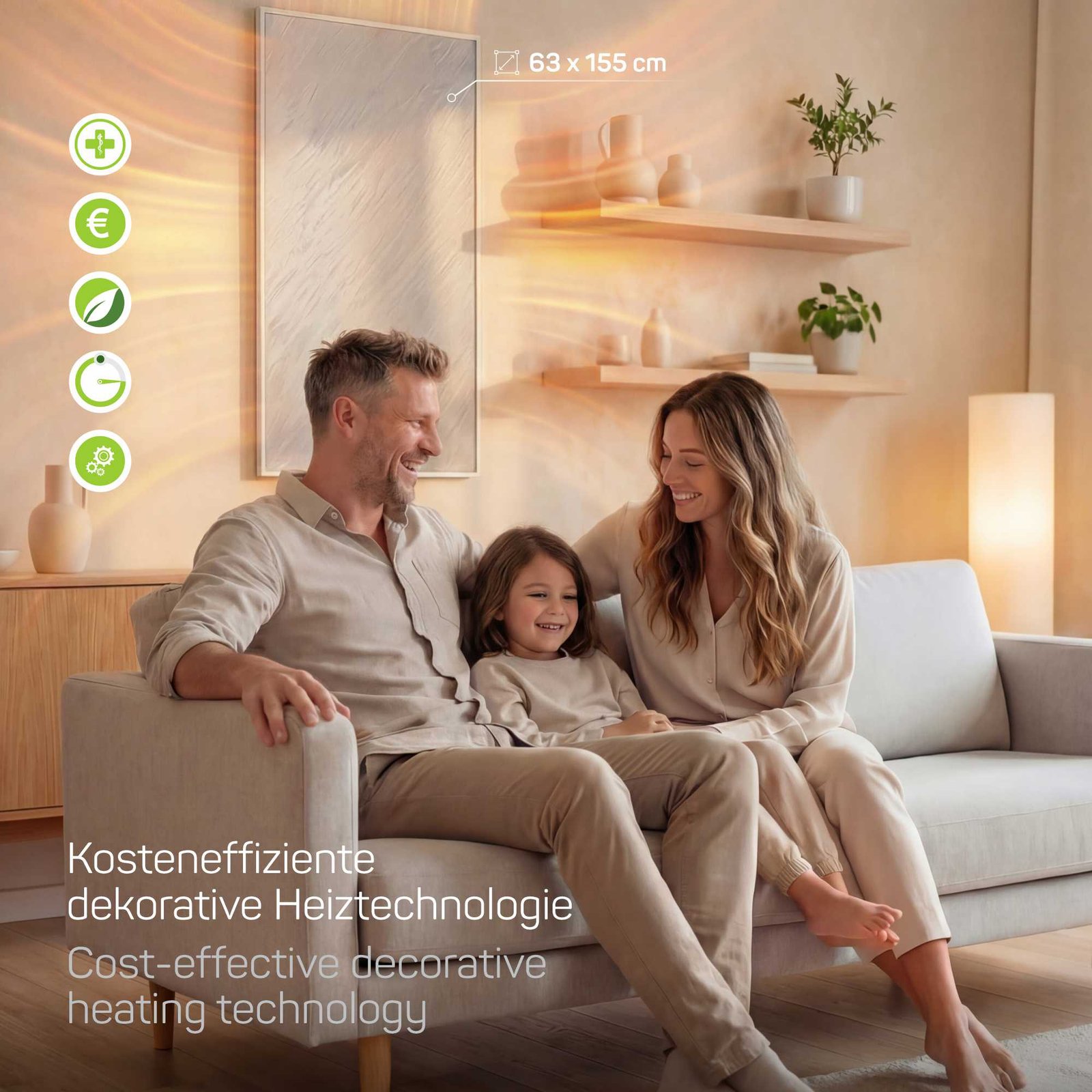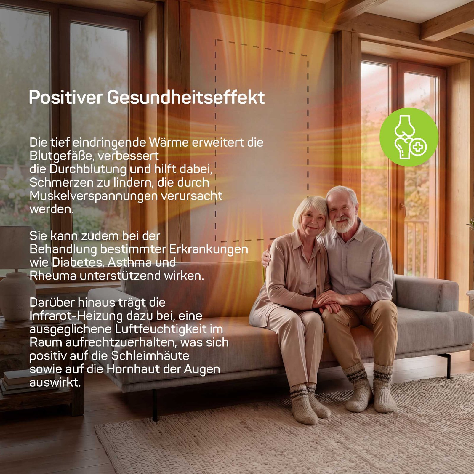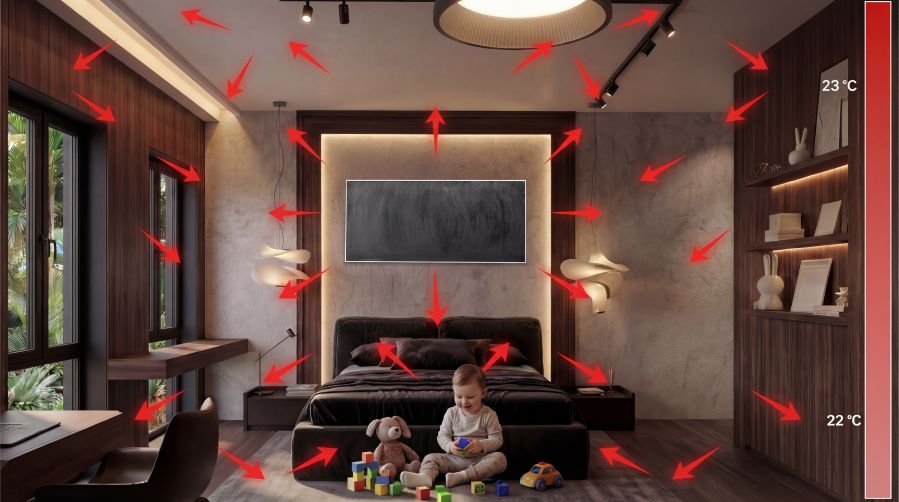 Angenehme Wärme ohne trockene Luft, ideal für Wohn- und Arbeitsräume.