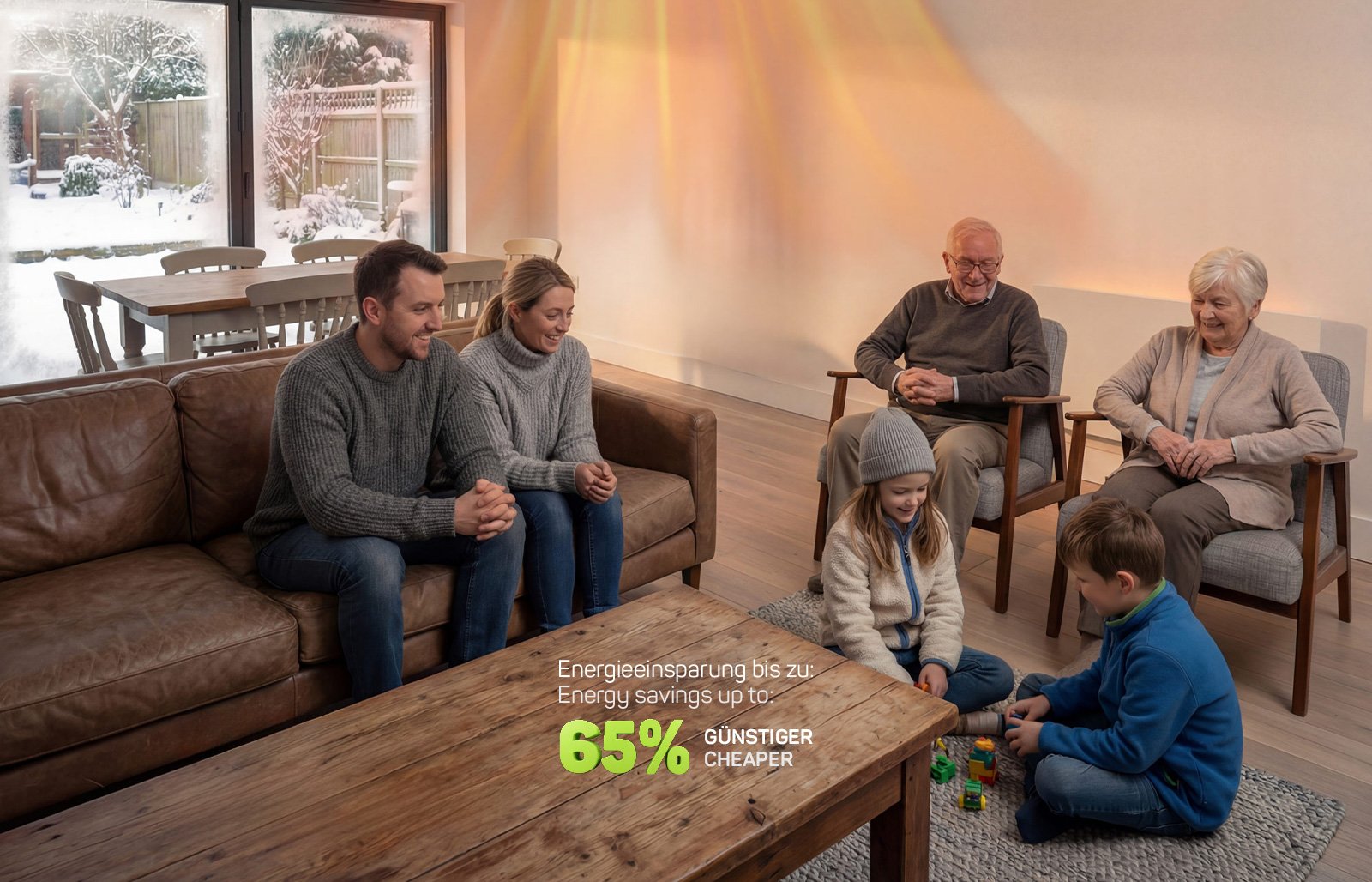 Spart bis zu 65 % Energie im Vergleich zu herkömmlichen Heizungen